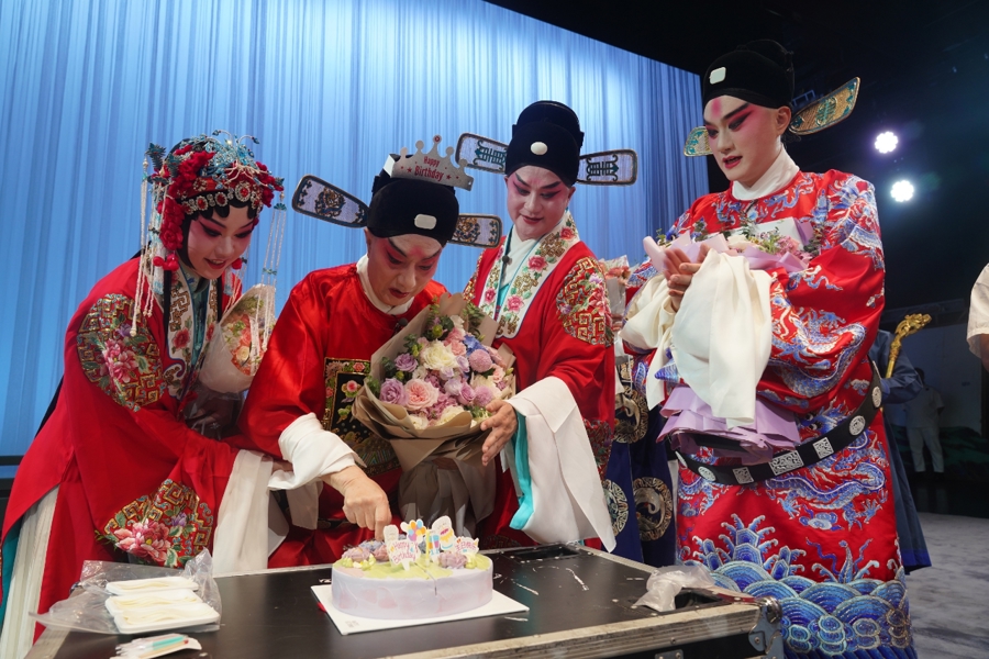 婉转的唱腔、细腻的身段、诚挚的表演,一群十七八岁的毕业生凭借6年戏校所学将昆曲传统戏《贩马记》里的悲欢离合演绎得令人动容。7月2日晚,上海戏剧学院附属戏曲学校2019级昆山昆曲委培班毕业大戏《贩马记》在天蟾逸夫舞台上演。84岁高龄的昆曲表演艺术家蔡正仁担任艺术指导,并在演出最后一场戏“三拉团圆”中献上精彩表演。谢幕后,爱徒张军和孙女蔡乐艺为他送上蛋糕,他在欢快的《生日快乐》歌声中许下心愿,愿昆曲事业后继有人、生生不息。