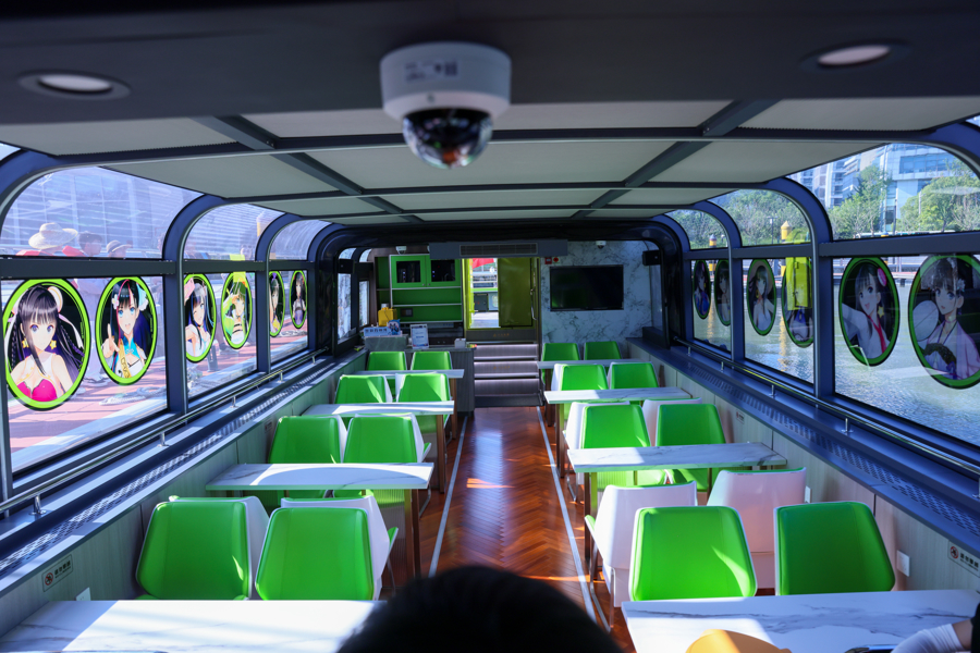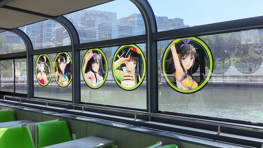 苏州河游船是上海重点打造的旅游线路之一。“痛船”采用半透明贴膜,并精细测算动漫图案的面积,让舱内的游客既能与动漫形象为伴,又能欣赏河畔的美景。尤其是船顶约3米宽、6米长的巨型动漫贴膜,在距离较远的高处也能一目了然,让岸上的市民游客也可以感受到二次元文化的浓烈氛围。涂装现场,小冉师傅对船舱侧面的贴膜进行着平整工作。他告诉文汇报记者,这几天上海连续高温,上午10点之后,船顶表面的温度高达70多摄氏度,“膜一贴上去就全卷起来”。“今天我们凌晨4点开始施工,忙到早上8点,完成了近八成的涂装。最后的收尾工作调整细节,让‘痛船’以更完美的形象与游客见面。”