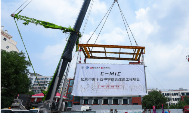 7月2日,由中国建筑国际集团旗下中海建筑有限公司(以下简称“中海建筑”)及中建海龙科技有限公司(“以下简称中建海龙”)联合承建的北京市第十四中学综合改造工程项目顺利完成首件混凝土模块化建筑吊装,标志着北京市首个混凝土模块化学校正式进入主体模块施工的关键阶段。