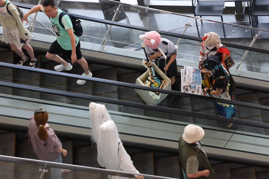 每逢动漫游戏展会,来自全国各地的二次元爱好者都会相聚上海,与同好进行线下社交。4日早上6点半,16岁的高一学生窗祈和15岁的团子分别从青浦、浦东的家中出发,一人COS成游戏《第五人格》中的昆虫学者梅莉·普林尼,一人COS成动漫《JOJO的奇妙冒险:星尘斗士》里的花京院典明。“放暑假了,这是我们第一次来参加CCG EXPO,体验挺不错。”窗祈说。