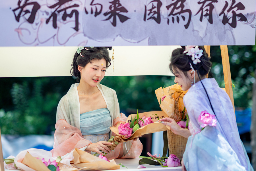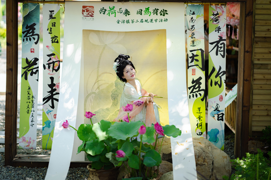 本次活动由上海金泽旅游发展有限公司举办。期间,精彩内容轮番上演。7月4日当天,写生创作体验与摄影创作同步开启,让艺术爱好者用画笔和镜头记录金泽的夏日美景;宋氏汉服演出惊艳亮相,且听 “筝” 吟 - 古筝演出为现场带来悠扬古乐,“荷”气生财 - 卖花郎互动增添趣味,“糕”朋满座 - 蒸糕项目体验、有“点茶” 事 - 点茶项目体验让大家感受传统美食与茶艺的魅力,泛舟“荷”上 - 花船小景、诗词雅集 - 书法创作体验、一“谜”惊人 - 猜灯谜、戏剥莲蓬 - 剥莲子体验、喜结“莲”理 - 福牌祈福、“拓荷” 而来 - 荷叶拓印体验等活动,更是将传统文化与夏日赏莲巧妙融合。