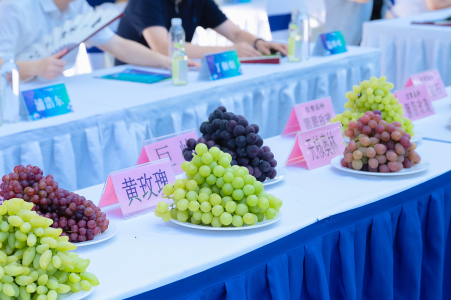 马陆葡萄品种丰富,早熟有夏黑、喜乐、京蜜,中熟有巨峰、巨玫瑰、醉金香,晚熟有阳光玫瑰、妮娜皇后等60余种,科研品种达120多个。今年,马陆葡萄不仅在产量产值上表现亮眼,在新品种培育和选育同样迈出了坚实步伐。在新品推介环节,介绍了马葡5号(胭脂红)、马葡6号(蜜宝儿)、马葡1号和玫瑰皇后四款品种。其中红颜皮薄、果肉脆甜的马葡5号(胭脂红)及果软多汁、香味浓郁的马葡6号(蜜宝儿)是今年亮相的新品种,两款均为上海马陆葡萄研究所杂交选育的优良品种。