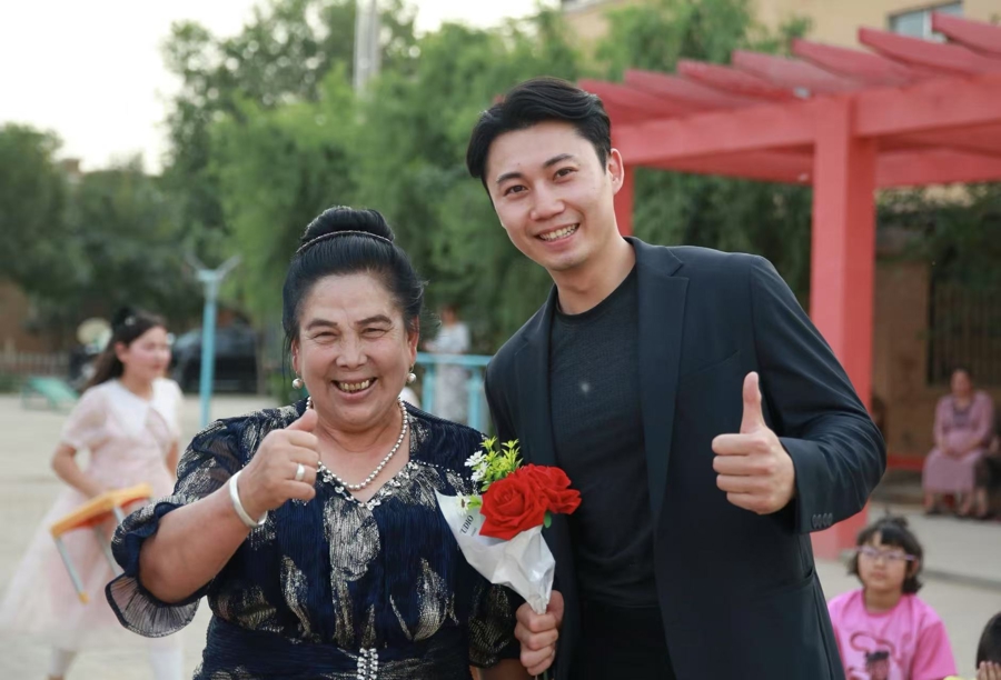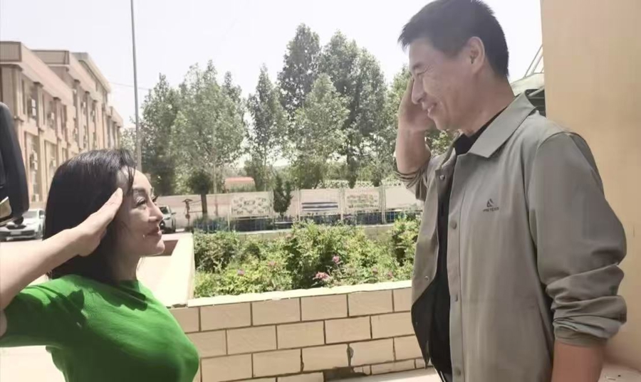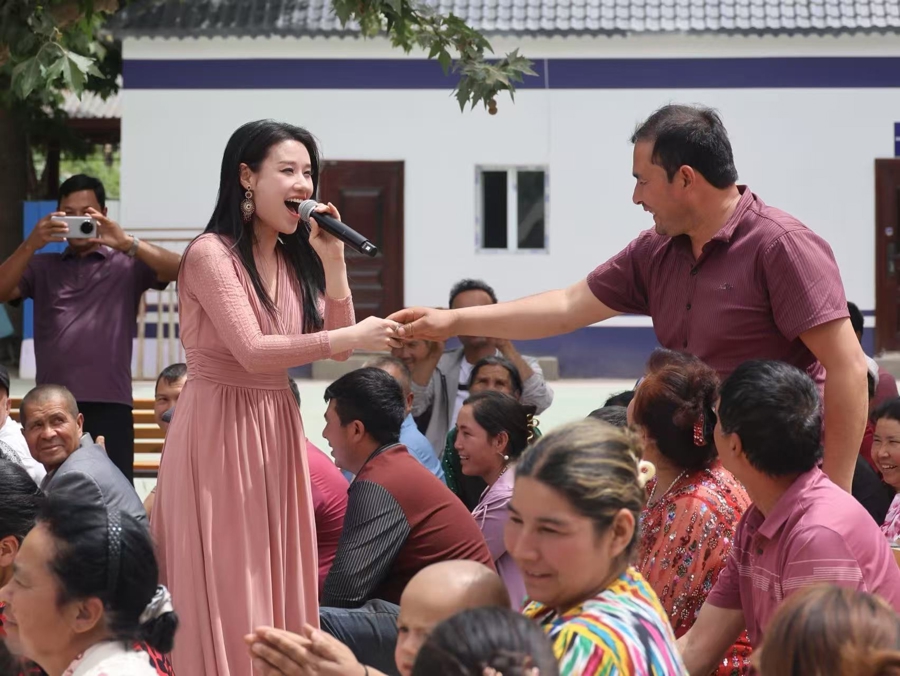 在泽普县福利院的慰问演出现场,声乐演员黄晓与县民政局局长张建强交谈时,得知这位民政干部27年前竟是海拔5380米的“神仙湾哨所”的一名班长。去年,黄晓曾随团登上神仙湾哨所慰问演出,张建强得知后,向她敬了一个军礼:“真没想到你们能去我的老部队,那可是‘生命禁区’啊!你们不仅上去了,还在那种极端环境下完成演唱,实在太了不起了。” 同为退役军人的黄晓回了一个军礼:“你们在最艰苦的地方守护国门,这份坚守值得我们崇敬,把歌声送到祖国最需要的地方,是我们最大的光荣。”