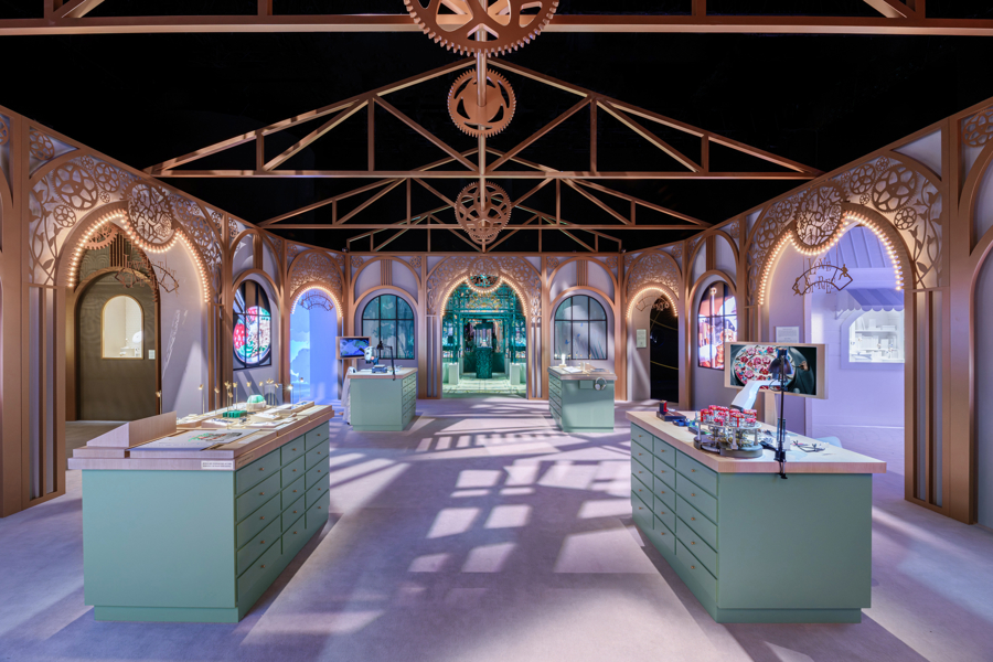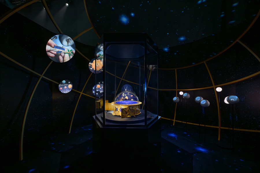 此次展览以全新视角演绎世家对于时间与诗意的艺术诠释,为上海市民呈现一场世界级的文化、艺术与美学的盛宴。展览空间透过引人入胜的叙事脉络展现梵克雅宝的制表工艺,全方位呈现时计臻作,引领观众展开一场迷人的机械之旅。展览内设珍奇柜,陈列品牌历史档案与博物馆典藏臻品;展览的中央区域陈设四处制表工作台,生动呈现工匠大师的精湛技艺。数个独立展区分别呈现芭蕾舞伶与仙子、诗意星象、爱情故事、迷人自然等灵感主题,诠释梵克雅宝“时间的诗篇”独树一帜的创意想象。
