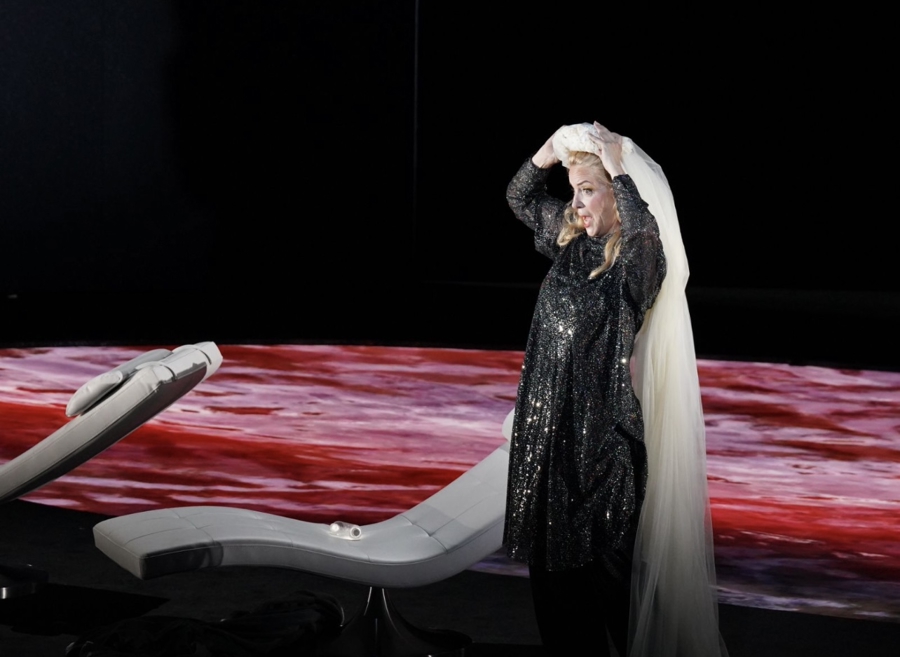 歌唱家“卡司”上,当晚A组最亮眼的显然是丽丝·林德斯特伦饰演的伊索尔德,她在包括著名的《爱之死》中的唱段中展现出“大女主”的气质。科学的发声方法让她的声音能毫不费力地让剧院最后一排的观众听闻。而饰演特里斯坦的叶林·凯夫斯显得力不从心,在第二幕中浩大的二重唱中被伊索尔德彻底压制,让这个二重唱阴盛阳衰,并带出一丝近乎幽默的错位感。当然,特里斯坦是无数男高音的“鬼门关”,男高音显然对自己“心里有数”,前两幕保存实力后在把重心与能量都放到了对角色最有挑战性的第三幕。男二女二都有出色的表演,在国家大剧院《莱茵的黄金》便给我留下很好印象的贝蒂娜·兰奇塑造了一位温柔且智慧的布兰甘尼,拜罗伊特常客斯蒂弗曼饰演的库文纳尔的低音区则显示出丰富、令人沉醉的磁性泛音。合唱团在幕侧表现的“真实世界的声音”同样有力地让人可以联想到他们声音所描绘的画面。