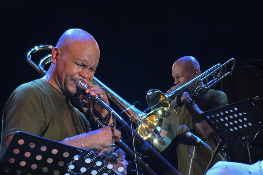 今年7月5日至13日,MISA带来7场风格多元的音乐会。开幕演出由两位格莱美奖得主罗宾·尤班克斯(长号)与安东尼奥·哈特(萨克斯风)联袂呈现。他们与乐队演绎了《红黑绿蓝调》《水》等作品,贝斯、电音与非洲鼓点交织,旋律时而活泼轻快,时而舒缓温柔。