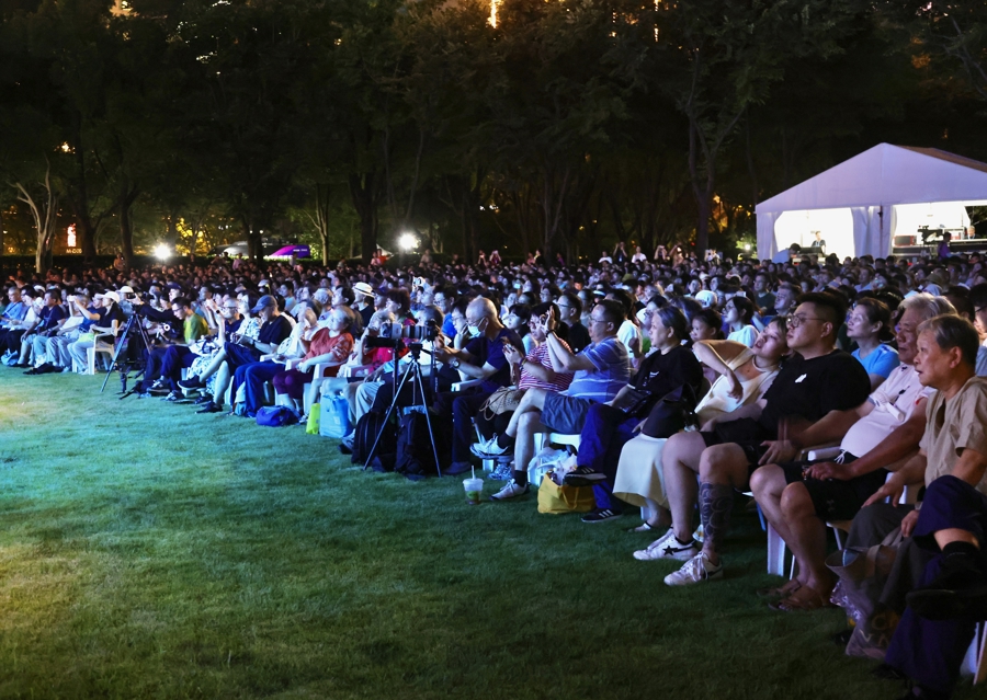 夜色将至,暑热还未散尽,蝉鸣声中,整座城市流光溢彩。昨晚,2025上海城市草坪音乐会“夏之魅”暨2025上海夏季音乐节黄浦系列演出在上海城市草坪音乐广场拉开序幕。首场演出特邀格莱美奖得主罗宾·尤班克斯和格莱美奖提名获得者安东尼奥·哈特共同呈现“爵士管乐双雄会”。