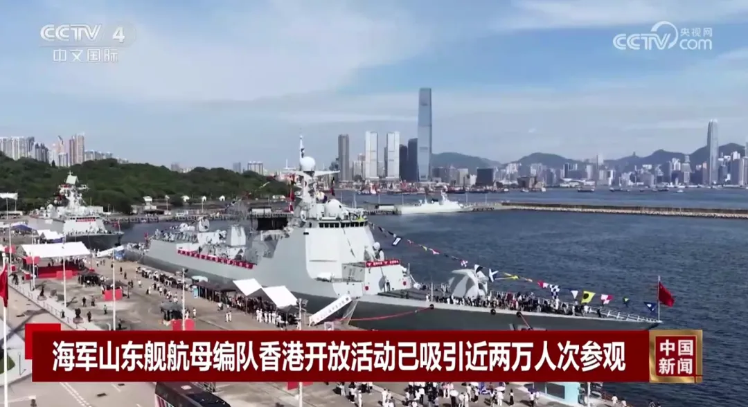 在香港回归祖国28周年之际,中国人民解放军海军山东舰航母编队抵达香港特别行政区,开启为期5天的访问活动。5日,舰艇开放活动进入第2天,共有近两万人次相继登上舰艇参观。