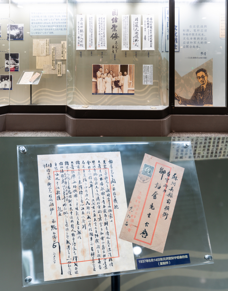 “团结御侮的民主先锋”板块通过对事件背景、“七君子”狱中生活、各界营救等相关史料的集中展示,致敬先辈战而不屈、“天下兴亡,匹夫有责”之精神。