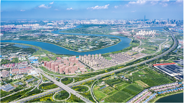 海河的“几”字形河湾,形成了大面积滨水地带,塑造着塘沽湾独特的城市风貌景观。项目依托12公里长海河岸线的优质景观资源,建成21万平方米的海河湿地公园对外开放,并设置了多处民生、娱乐设施丰富了居民生活,成为海河南岸居民运动休闲的绝佳去处。清晨,当第一缕阳光洒在波光粼粼的海河上,很多居住在塘沽湾的居民会走出家门,或沿着海河畔慢跑,呼吸新鲜空气;或在小区旁状如红丝带的慢行步道上散步,开启活力满满的一天。“春赏桃花夏赏荷,秋有彩韵冬看鸥”的优美居住环境,让“水、岸、路、地”都成了塘沽湾绿色宜居的代名词。在还迁居民心中,这样惬意的生活是城镇化建设前不敢想的。