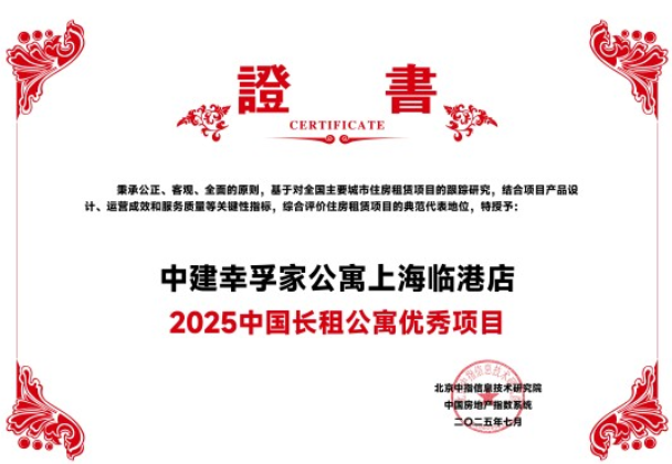 中建幸孚家公寓临港店荣获中指院“2025中国长租公寓优秀项目”