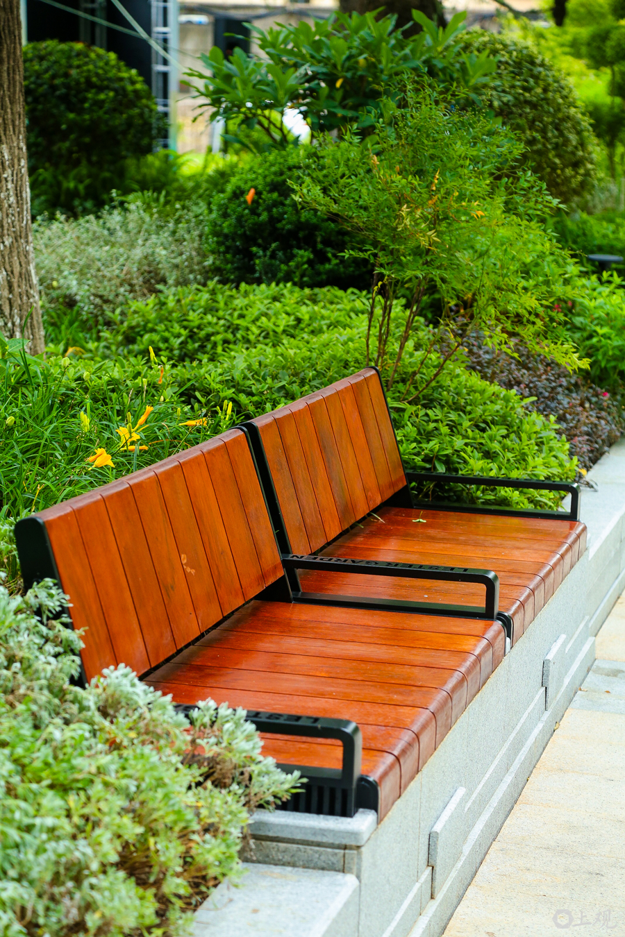 花园内,设计巧妙融入雷士德医学院历史脉络与文化符号,将历史建筑纹样、医学院发展历程等内容,转化为铺装、小品、水景、座椅等景观细节。在主入口,打造了精致水景及花境,设置了历史展台,市民游客可在此饱览雷士德历史建筑全貌;南侧水景潺潺,疗愈心灵,设有林下休憩空间。园内保留了现状长势良好的枫杨、银杏、广玉兰、雪松等多棵具有历史感的大树,它们既是延续场所精神的容器,也提供了安静怡人的氛围。