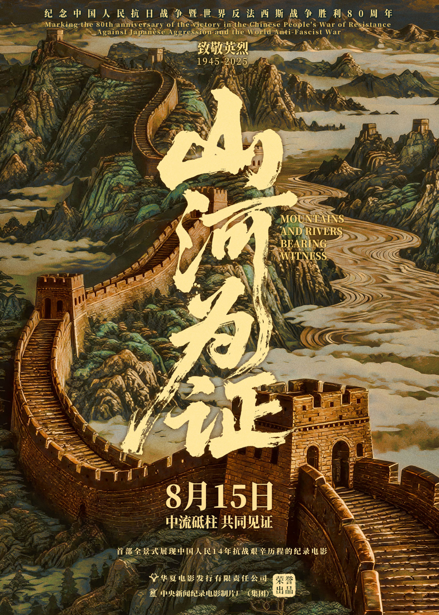 在纪念中国人民抗日战争暨世界反法西斯战争胜利80周年的重要历史时刻,纪录电影《山河为证》正式宣布定档,将于2025年8月15日登陆全国院线,与亿万观众共同见证那段波澜壮阔的峥嵘岁月。