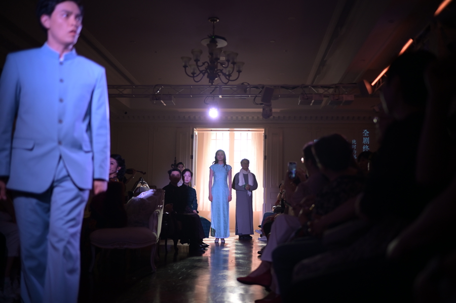 环境式沪剧《日出》突破传统戏曲的观演习惯,打造“沪剧+”演艺新模式,开售至今吸引传统戏曲爱好者、年轻观众等多元观众群体的关注。彩排期间,先睹为快的观众们掌声雷动。沈传辰欣喜地发现,“上一轮《日出》驻演时,有位观众来看了三次,这一轮驻演,她又早早买好了票。”在沈传辰看来,环境式沪剧《日出》巧妙将沪剧这一非遗文化与上海城市历史肌理紧密结合,通过灯光、布景与空间重构,结合应用数字多媒体技术,赋予老洋房新的文化意义,“演出融合长三角的国家级非遗瑰宝苏绣,观众能近距离欣赏到由苏绣皇后姚建萍亲自设计并手工刺绣的高定旗袍,还构建‘虚实融合、以虚促实’的文化消费新模式、新业态,从非遗活态传承、沉浸体验升级、文旅商创新融合三大维度深度发力,实现艺术价值与产业价值的共振。”