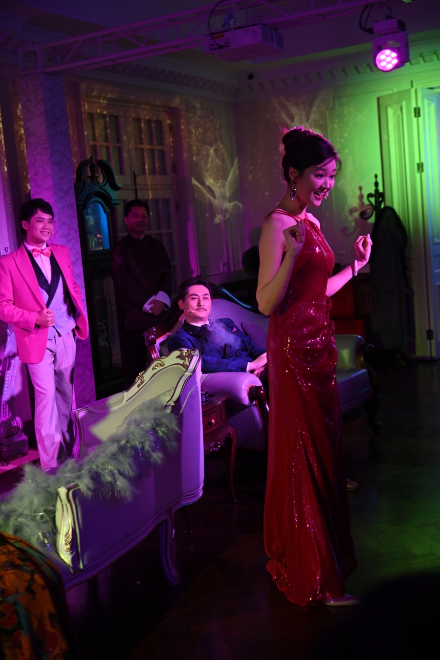 老洋房一楼的沪剧艺术传习所设有约30分钟的沪剧文化入门级体验活动。演出前,在剧中不同演员的带领下,观众们一同游览百年洋房,通过经典沪剧专属唱段表演以及经典戏曲身段互动教学,深度感受海派文化的艺术氛围。