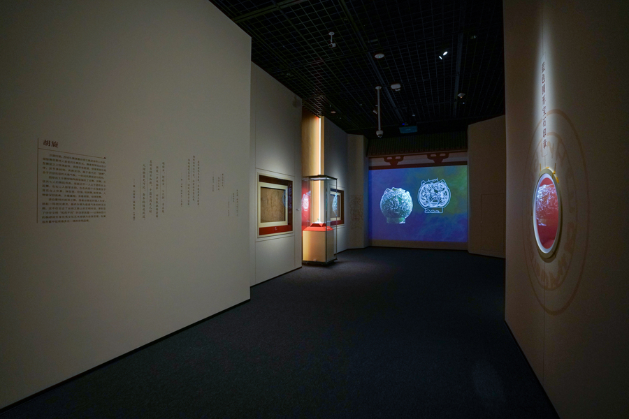 据记载,隋唐时期,固原称“原州”,城内居住着大量入华粟特人。展线末端,以固原隋唐史氏家族墓出土文物为切入点,展现入华粟特人的中国化进程。这是国内首次发现的隋唐时期粟特人墓群,从此次展出的出土壁画可以看出,人物造型方法为典型的中原式,线条遒劲有力,变化丰富。而面覆金饰、口含金币的葬俗,又体现出对中亚人部分传统习俗的保留。
