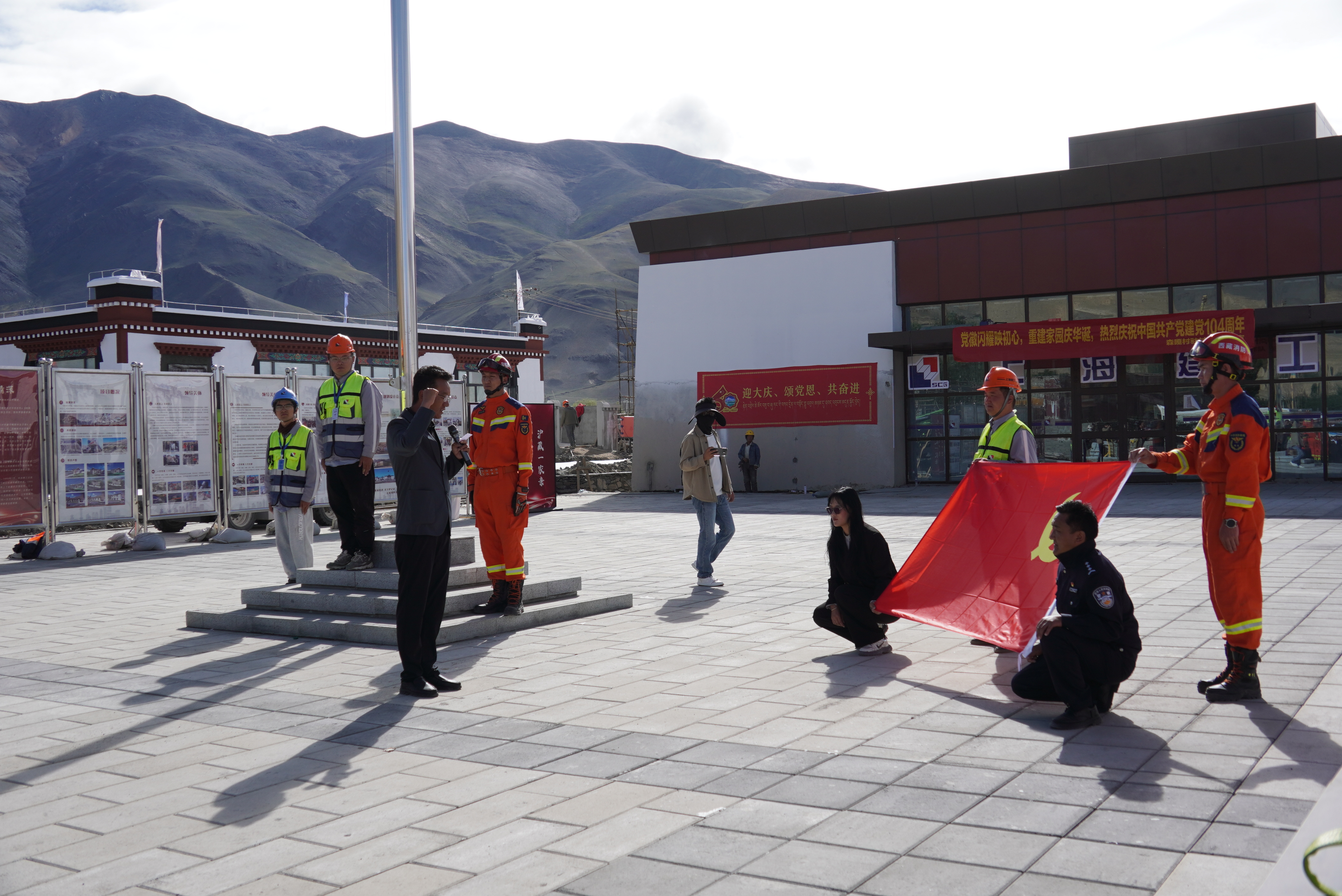于是,7月1日当天,森嘎村举办了灾后重建党建联建活动,以“开放日”的形式邀请村民们前来,补上一个特别的“拖羌”。没想到,村民反响热烈,一大早就成群结队赶来。不止如此,他们还自发向现场的党员干部、工程建设者、消防指战员、人民警察、医务工作者等送上哈达、甜茶、水果点心,表达他们最质朴的感谢。