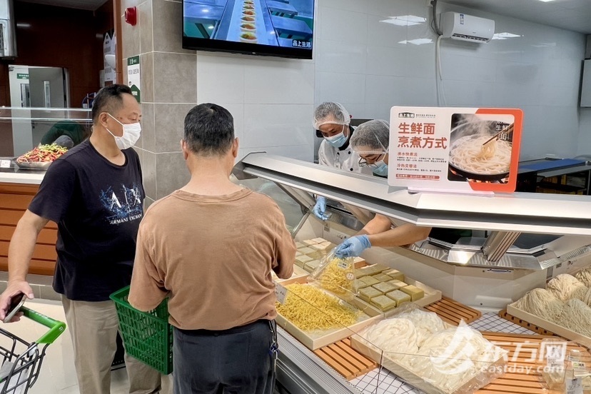 记者在现场看到,不少商品的价格同样击中人心:5.9元的贝果“比脸大”,手撕烤鸭19.9元一只,59.9元能买10斤五常大米稻花香2号,一只1.5-2公斤的鲜活帝王蟹售价499元......开业前3天的“打卡送鸡蛋”“满额抽奖”等福利,更让周边居民提前打起了“购物清单”。市民赵阿姨对记者说:“我喜欢这里的大油条,一根35厘米左右长的只要3.5元,又是现做现卖,性价比很高,另外肉包子、馄饨之类的也都是明档,让我们消费者吃得放心。”