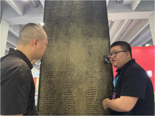采访期间,VillaePaint甄图艺墅家的展位始终络绎不绝,无论是视觉效果还是手感触及,Villae paint的展板都得到了现场观众的高度认可。那么,如此吸睛又让人爱不释手的Villae paint产品究竟有什么魅力?刘海丰也从不同维度给出了全方位的解读。