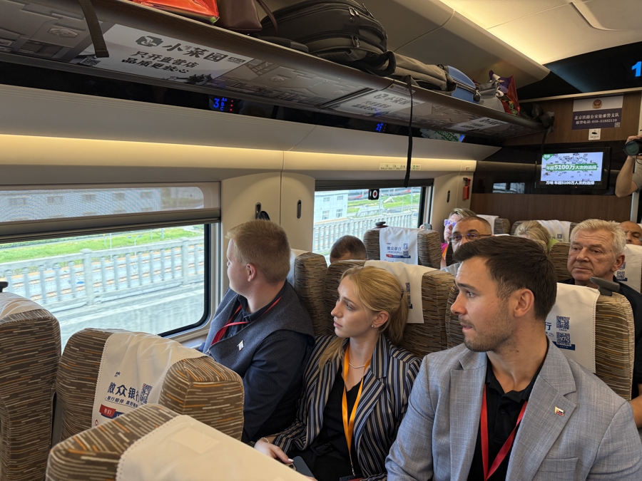 与会嘉宾乘坐的G18,从虹桥站出发前往北京南站,全程只需要4个多小时,最高时速可达350千米。斯洛伐克民声党主席顾问、斯议会驻欧盟代表加布里埃尔·费舍尔点赞,这趟列车就是中国的基建,“环境整洁,乘坐舒适,非常棒的体验”。