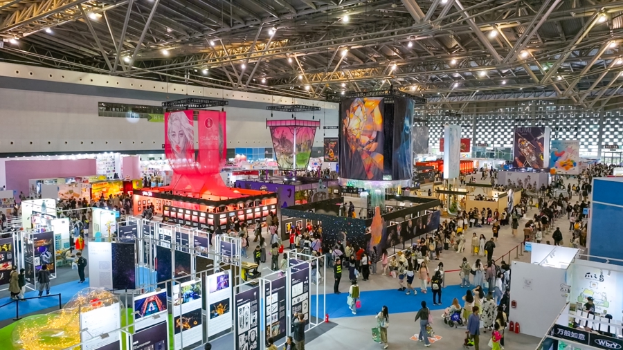 在“大咖特展”单元,除天野喜孝、戴敦邦外,《王者荣耀》概念设计师刘冬子、知名卡牌插画师斋藤直葵等也将带来沉浸式个展,呈现珍贵原稿、限量潮玩及深度对话,并推出全球限量联名版画与典藏衍生品。“艺术个展”板块,800+艺术家个展,涵盖插画、潮玩、手作等超20个品类。“艺术书展”则汇聚了150+册选自全球的插画集、绘本、漫画、独立杂志、摄影集与诗集。“专题画展”甄选80幅佳作,以青年创作者的视角诠释"生长之光"的时代内涵。在“概念艺术”与“独立放映”单元,30+部影视概念手稿与VR作品、30部国内外独立动画、记录短片轮番上映。特别值得关注的“装置互动”也将散落展馆,由潮玩艺术家木二与黄芃超创作《HuauH 抱抱花》,以气球花与童年小红花为灵感,童趣治愈。