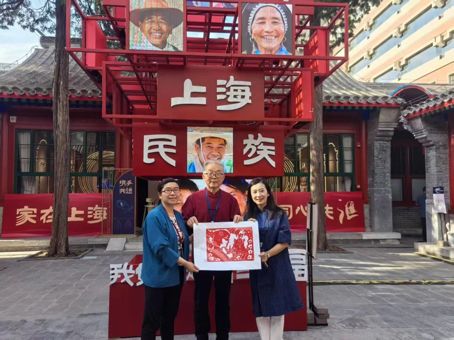展区里,“数说徐汇”AI视频播报着民族创业者的创新故事:民营企业家将民族艺术基因注入算法模型,打造了具有中华民族文化神韵的原创IP,成为“中华民族文化出海”的新名片。在徐汇这片创新热土上,“家在上海·同心共汇”徐汇民族工作品牌正串联起各民族智慧;在地校共建机制下,9所高校师生与社区居民一起办活动、解难题,在共商共议中加深理解、增进认同。