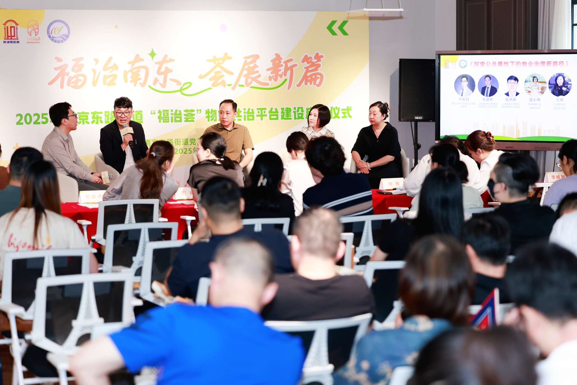在“福治共议”——“共治苏河岸·共享福治荟”面对面主题沙龙环节,复旦大学马克思主义学院副教授李威利、上海嘉攸诚房地产评估咨询有限公司总经理朱嘉彬、上海海蓝大洋物业管理有限公司代表张世新、河畔明珠小区业委会主任范小明、三德居民区党总支书记王理,围绕《探索公共属性下的物业治理新路径》主题展开深度对话,嘉宾们就共治机制优化、服务品质提升、居民参与深化等议题交流真知灼见,为“福治荟”2.0版的实践提供了宝贵思路。