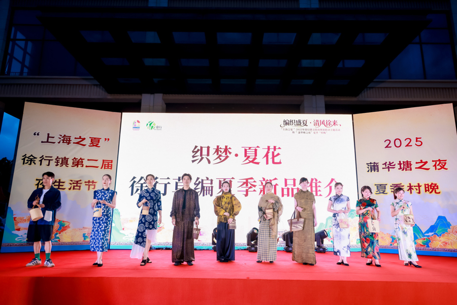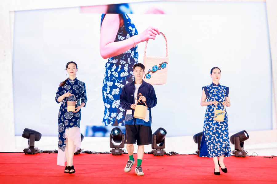 徐行是国家级非物质文化遗产草编的发源地。活动现场,一场独特的“时装秀”吸引了众人的目光。身着传统旗袍款款而来,模特手上挎着的时尚包包,正是徐行草编的夏季新品。