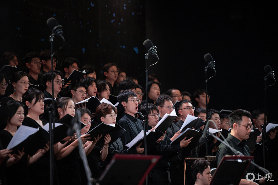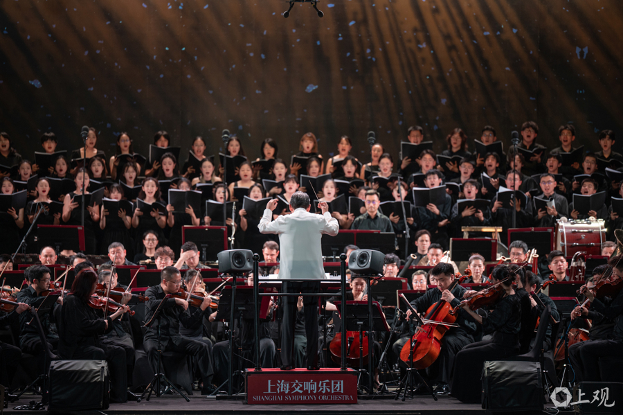 7月13日晚,上海城市草坪音乐广场被激昂的音乐笼罩,上海交响乐团携手回声节日合唱团,在音乐总监余隆的指挥下,以纪念中国人民抗日战争暨世界反法西斯战争胜利80周年为主题,举办了一场意义非凡的音乐会。