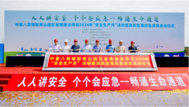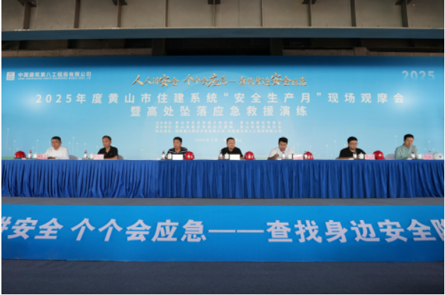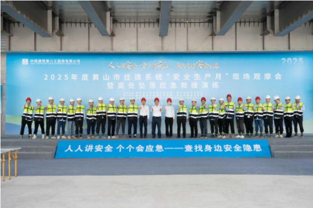 依托农民工权益保障大厅,日常开展全员安全教育并创新教育形式。自大厅投用以来,承办2025年度黄山市住建系统“安全生产月”现场观摩会暨高处坠落应急救援演练、2024年度高新区“安全生产月”活动暨高处坠落应急演练启动仪式,通过安全带受力测试、坠落体验装置强化高空作业规范;联合消防部门模拟工地火灾场景,组织灭火器使用、应急疏散演练;针对黄山雨季特点,开展防台防汛应急演练,测试抽排水设备联动效能;在安全质量体验区组织有限空间应急处置演练,提高项目管理人员对于受限空间作业的管理和组织协调能力。