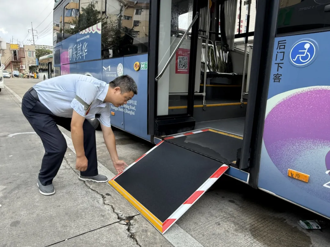 记者在公交55路世界路起点站看到,公交55路已全线升级为无障碍低地板新能源车,配备升降装置和辅助设备,轮椅可以轻松上下。驾驶员江飞在演示中门倾斜辅助设备时告诉记者,他们会一直关注行动不便的乘客,主动上前协助,如果有坐轮椅的乘客,1分钟左右就能完成上下车辅助。