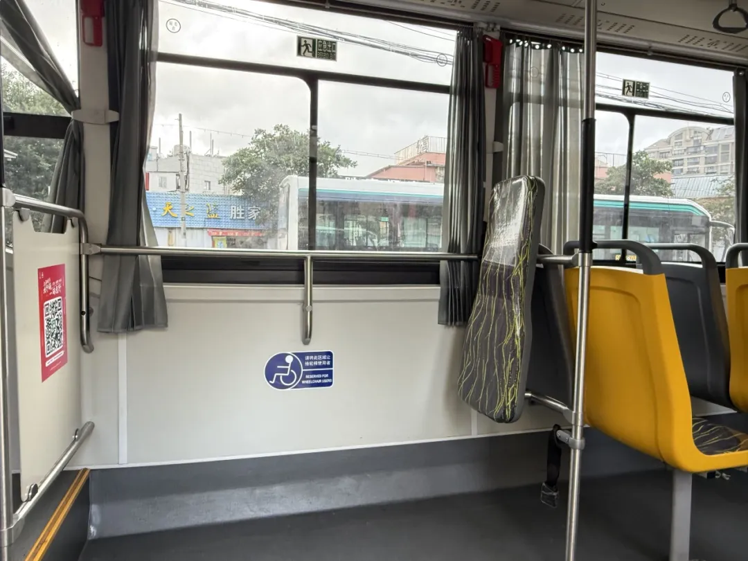 硬件标识清晰:线路车辆普遍升级为无障碍低地板新能源车,配备升降装置、中门设置倾斜辅助设备,方便轮椅平稳进出。车身前后、车门及车厢内均有统一无障碍标识,方便老年乘客快速识别。