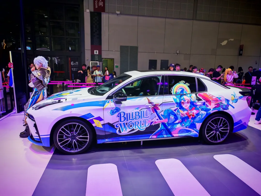 此外,B站与领克汽车的跨界合作成为展会焦点。领克首次以“痛车”形式参展,为多种车型定制了BilibiliWorld主题痛车衣,内场还展出了03+Racing车主的创意作品,吸引了众多观众打卡拍照。