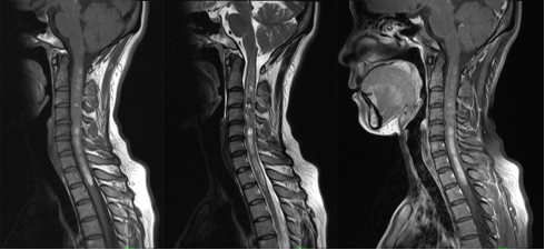 图5.颈段髓内海绵状血管瘤伴出血MRI图像