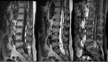 图9.L5-S1髓外硬膜下畸胎瘤MRI图像