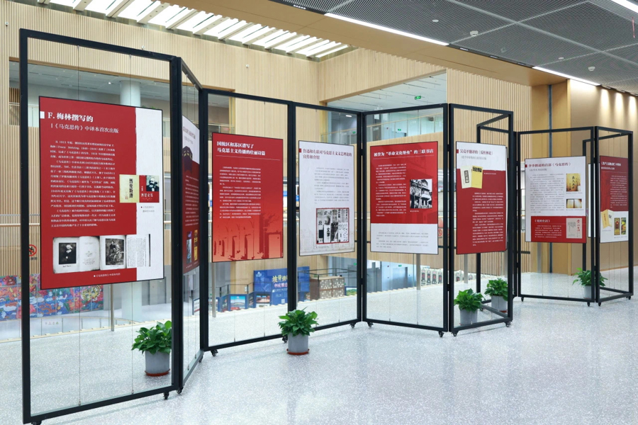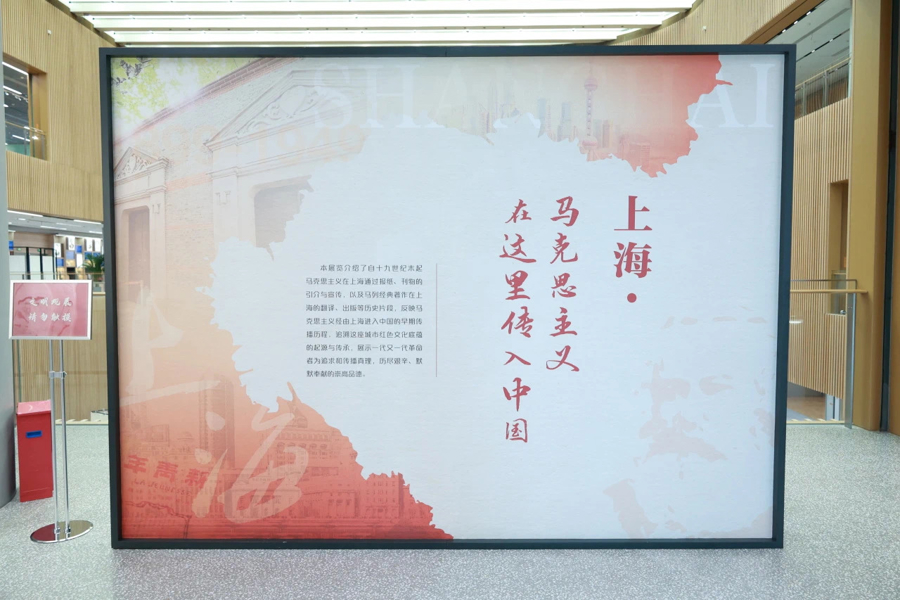 在上图东馆六楼上海社会科学馆展出的“上海:马克思主义在这里传入中国”展览着重介绍自十九世纪末起马克思主义在上海通过报纸、刊物引介、宣传,以及马列经典著作在上海翻译、出版的历史片段,反映马克思主义经由上海进入中国的早期传播历程,追溯这座城市红色文化底蕴的起源与传承。