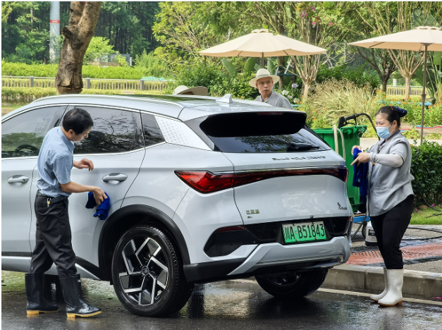 与此同时,洺悦名邸项目再次举办“爱车焕新”免费洗车活动,受到了业主们的热烈欢迎。尽管烈日初升,工作人员8点便已准备就绪,8:06就迎来了首位车主。物业工作人员技术娴熟,配合默契,短短十分钟,一辆干净亮丽的车便交付到车主手中。此外,物业还提供冰镇酸梅汤和避暑药品,收获了业主的暖心回馈。一位车主送来两个大西瓜,说道:“这么热的天,你们辛苦了,给你们消消暑。”另一位年长车主也点赞道:“你们的便民活动办得不错,真是帮到了我们心坎里!”