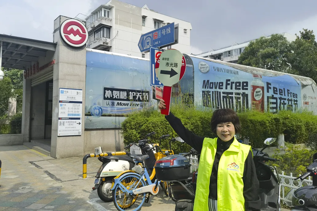 在8号线市光路站3号口门口,街道管理办工作人员举起一张“斜列式停放示意图”,当起现场导师;7名由睦邻中心成员、街区党员、地铁职工组成的突击队,徒手把叠罗汉般的单车“拆塔”归位;6位银发退休党员高举荧光牌,在人流中高声“导航”:“市光路南段空位多,走过去只要3分钟!”……