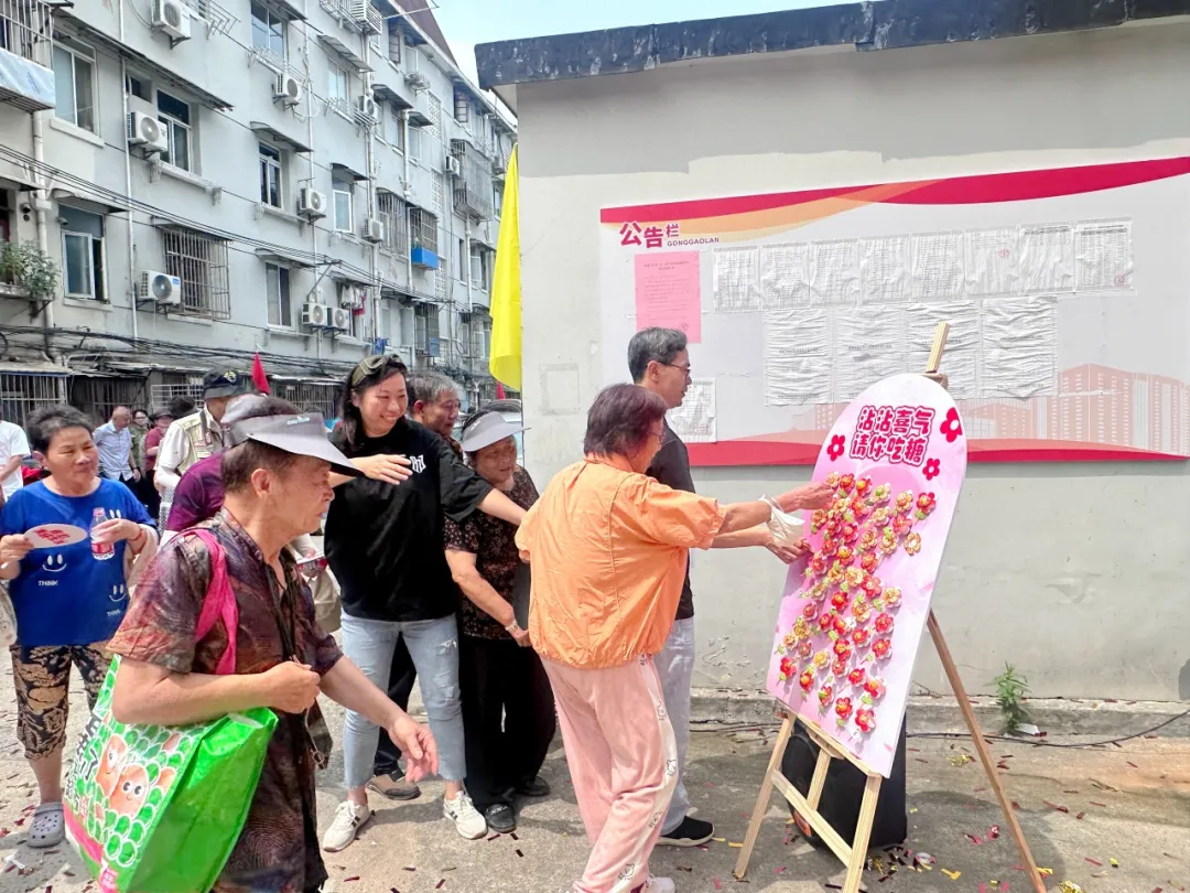 今天(7月14日)上午,杨浦区控江路街道凤城三村64、67、68号旧住房成套改造项目现场人头攒动,36户居民来到项目进度栏“星星墙”前,共同庆祝二轮签约实现100%。