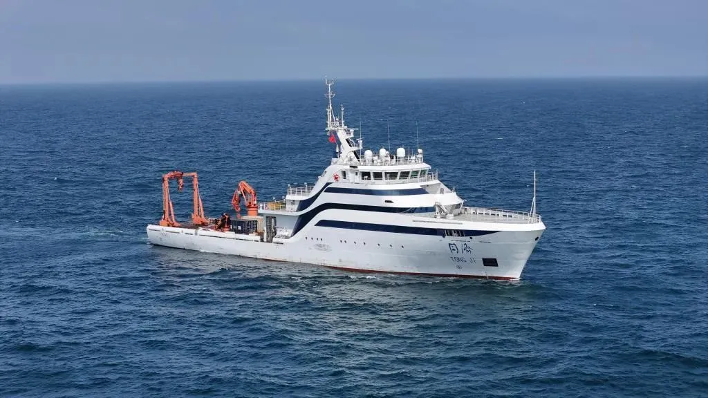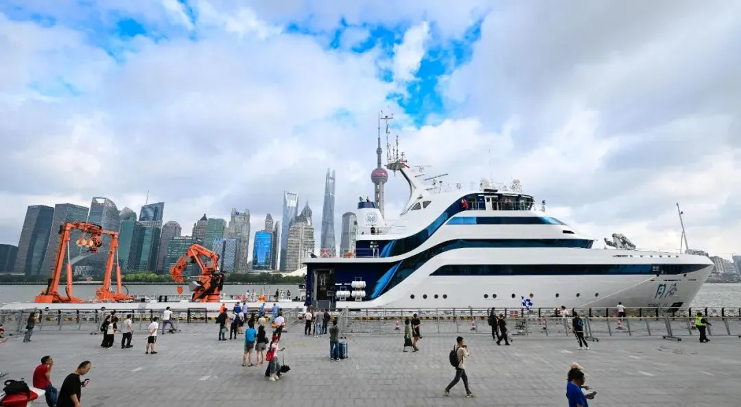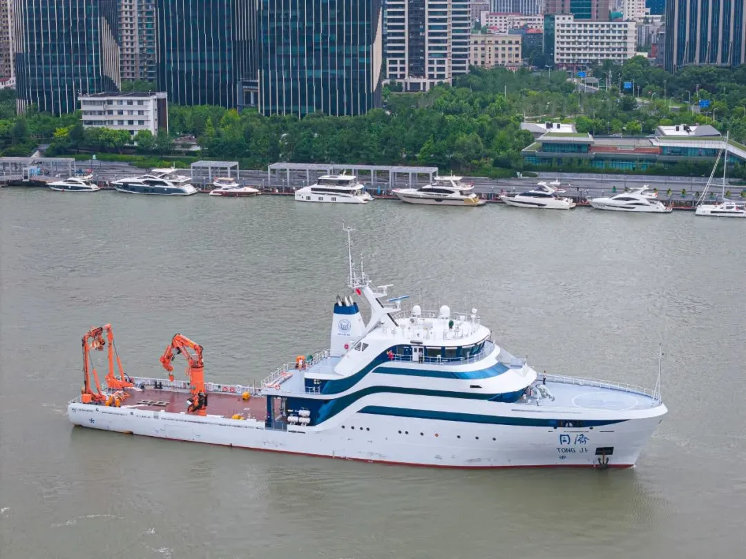 作为新一代绿色、静音、智能型综合科考船,“同济”号集海洋地质、海洋化学、海洋生物等科考调查,以及科学研究、人才培养、科普教育和文化传承等多功能于一体,是同济大学着力打造的“海上校区”。“同济”号于2024年4月开工建造,今年1月下水,5月完成综合海试。