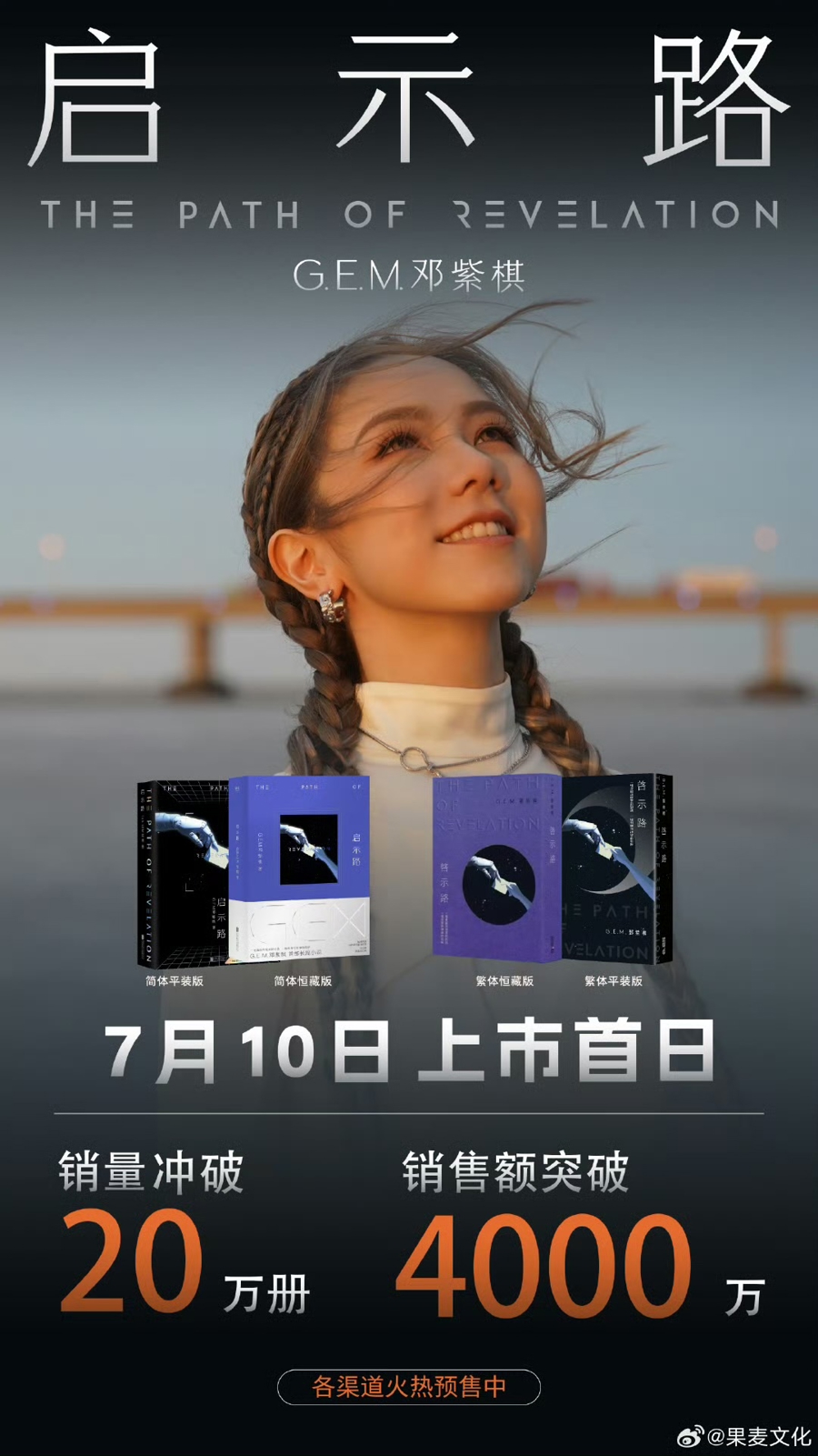 在此对照下,邓紫棋、曾轶可的新书算得上“断层式”领先。据邓紫棋粉丝统计,《启示路》半小时狂销约12万册,一小时销售约18万册。在果麦文化的证券页面,有人询问,“邓紫棋(小说)的码洋能到多少,对公司收益有影响么?”新书发售后,果麦文化股价创下近一年新高。