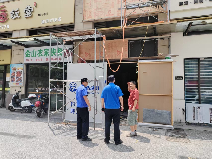 “金山全区有9000多家沿街商铺。近年来,城管队员在执法工作中发现,沿街店铺常因为不熟悉装修相关要求,在装修过程中出现违规行为,涉及空调设备安装、建筑材料搅拌、生活垃圾容器设置、店内结构修改等方方面面,不仅带来安全隐患,给自身造成损失,也是对执法资源的一种浪费。”金山区城管执法局党组书记、局长陆才华告诉记者,为引导商户合规装修,该局今年经过深入走访调研,制定并全面下发《沿街店铺装饰装修合规指引》,通过换位思考,为沿街商铺提供精准服务,把执法前移“治未病”“防患于未然”,希望实现街区颜值和安全的双提升。