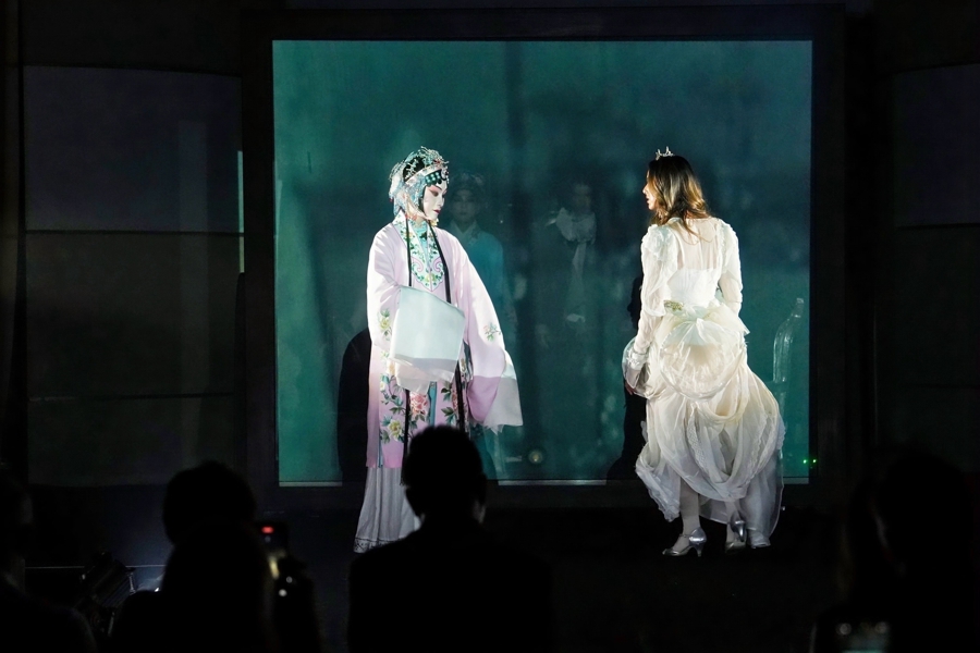 “杜丽娘”与“柳梦梅”的表演,也让张冉难忘,“传统《牡丹亭》有段花神表演,我和‘柳梦梅’不会在舞台出现。叶老师安排15秒双人舞,把‘杜丽娘’‘柳梦梅’在后台的活动通过光影搬到前台。在如梦如幻的光影中表演,人物情感更加浓烈。”