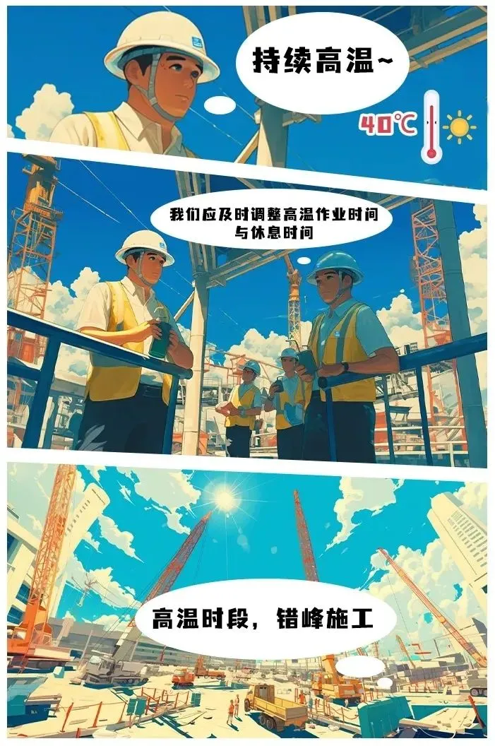 按照本市关于做好高温天气防暑降温和劳动保护的法规政策要求,执行高温天气室外露天作业相关规定,必要时缩短户外劳动者连续工作时间。