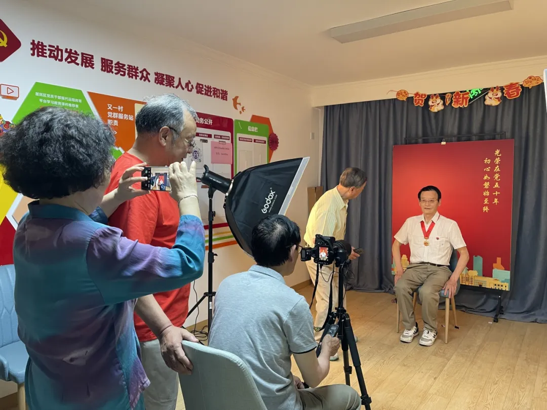 此外,党总支还举办“美好生活,精彩瞬间”主题摄影展,展现了镜头下的“红色传承”、“社区活力”、“城市风貌”等精彩瞬间,成为连接过去与当下的纽带,让美好生活可触可感。同时,党总支组织居民为50年党龄老党员拍摄颁发“光荣在党50年”纪念章照片,从调试设备到整理绶带,邻里互助贯穿了全过程。