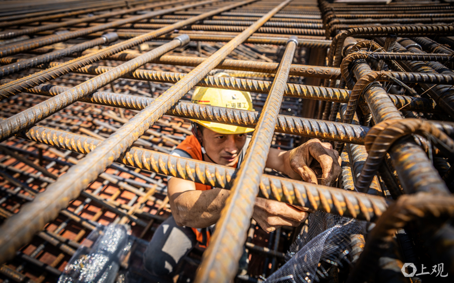 “周围钢筋一被太阳晒就格外热,像个蒸笼。来早点干就是为了避开中午最热的时候。”正在捆扎钢筋的卢师傅早上5点就赶来了工地,早上10点到下午3点他们将停止施工。