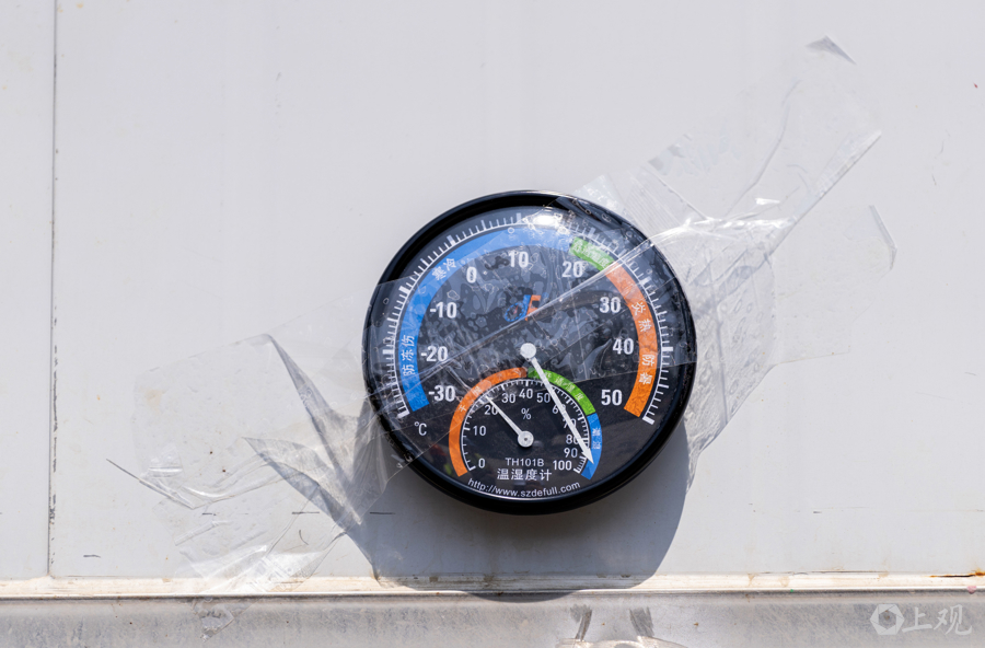 上午11点,在太阳的暴晒下,现场温度计显示环境温度已超过五十摄氏度。
