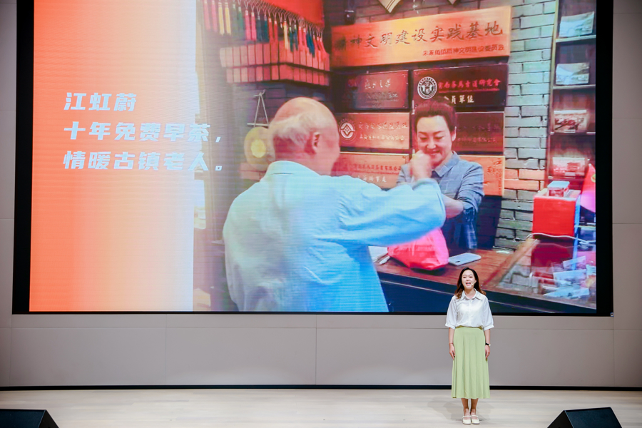 在区融媒体中心主持人关潇的讲述里,志愿者方杰“以爱为马,志愿无疆”的九年坚守如同璀璨灯塔;而重固镇社工办沈婷莉则为带我们感受道德模范关立平于“精神长河”中映照凡人微光的壮丽;交警周泽成《文明交通那些事儿》以“零拥堵”举措书写交通智慧规则的典范;盈浦街道社区干部顾晓东的《社区细胞革命》则成为新风的策源地——此篇章以榜样之光引领风尚,以规则之治提升素养,昭示着个体践行汇聚的磅礴伟力,标注了“文明之城”的道德海拔和精神高度,回答了“何为现代文明典范”的时代命题。