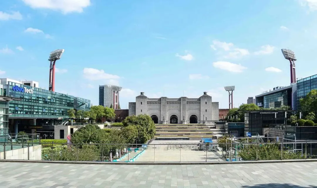 如果在地图上定位,你会发现,这座既有历史底蕴又充满活力的体育场,正位于创智天地广场。创智天地广场以江湾体育场为核心,建设时在尊重历史文化、保留历史建筑原有的风貌的前提下,将办公楼限高,打造更加舒适、多样化的街区型办公环境。