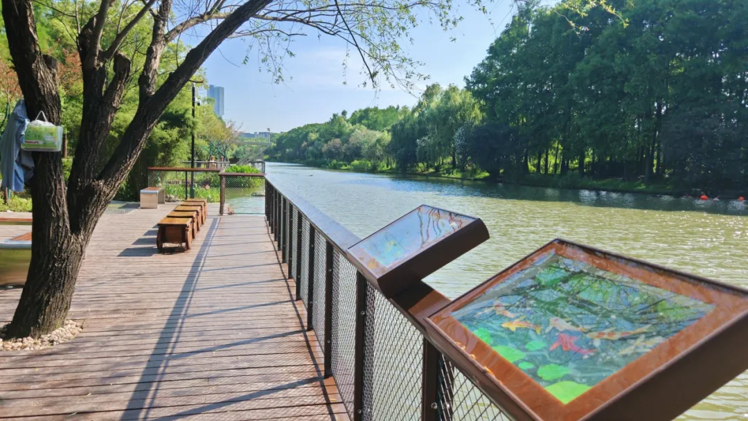 通过因地制宜地设计和改造,让1处垂钓平台化身“1个亲水休闲地标+1个户外科普站+1个网红打卡点”,推动滨水空间功能与价值升级,让740平方米的滨水空间托起市民对诗意生活的美好向往。